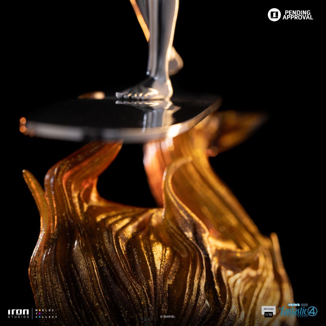 Crafted with remarkable precision, the statue showcases the Surfer’s reflective metallic form, highlighting his otherworldly presence and the sleek design that has made her a timeless Marvel legend. The shimmering golden cosmic base beneath his board adds dynamic energy and contrast, evoking the limitless power of the universe that flows through him.