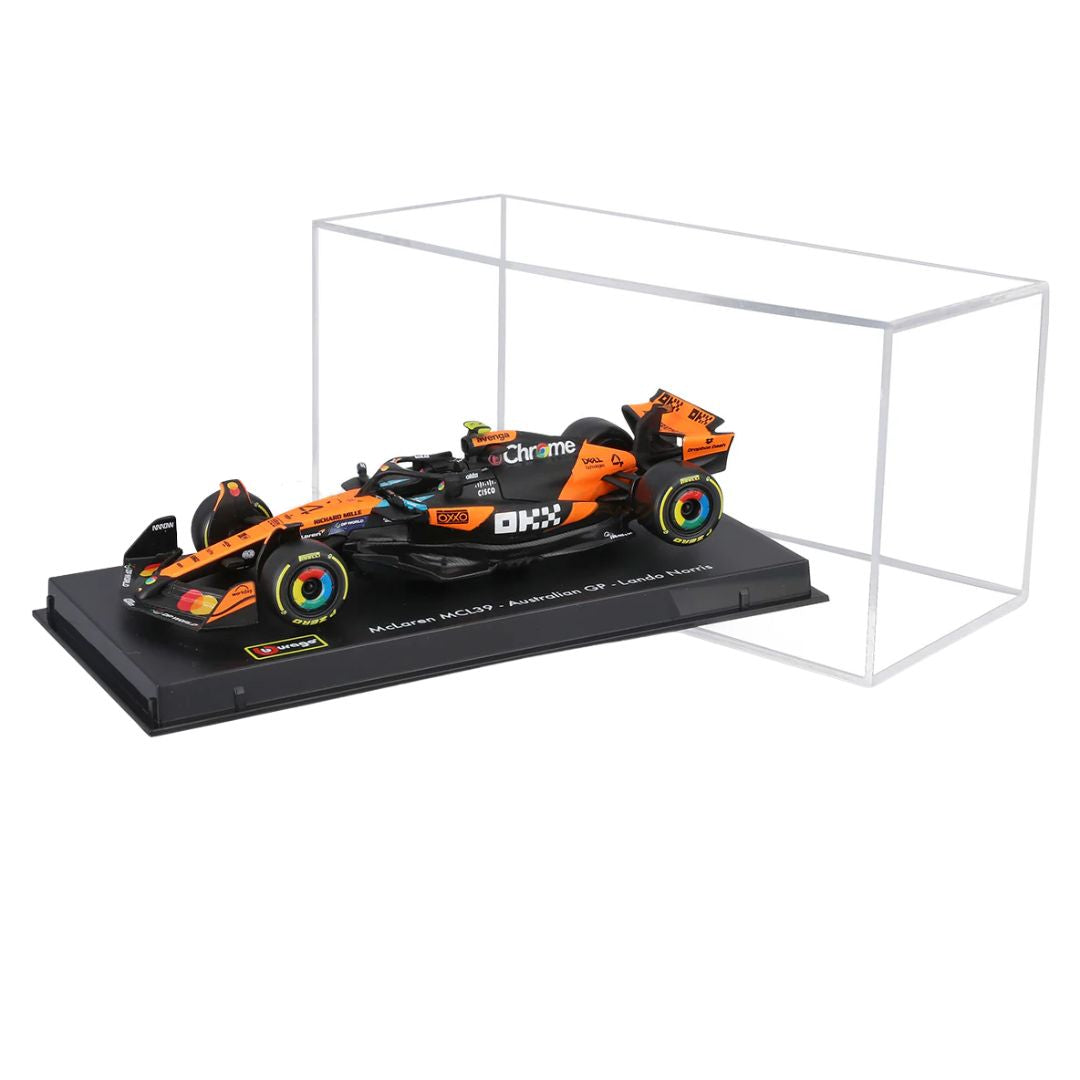 This 1:43 scale die-cast model is mounted on a branded display base and protected by a clear display case, making it ideal for safe, long-term display. Manufactured by Bburago, it delivers an excellent balance of accuracy, durability, and presentation—perfect for Formula 1 fans, McLaren supporters, and motorsport collectors.
