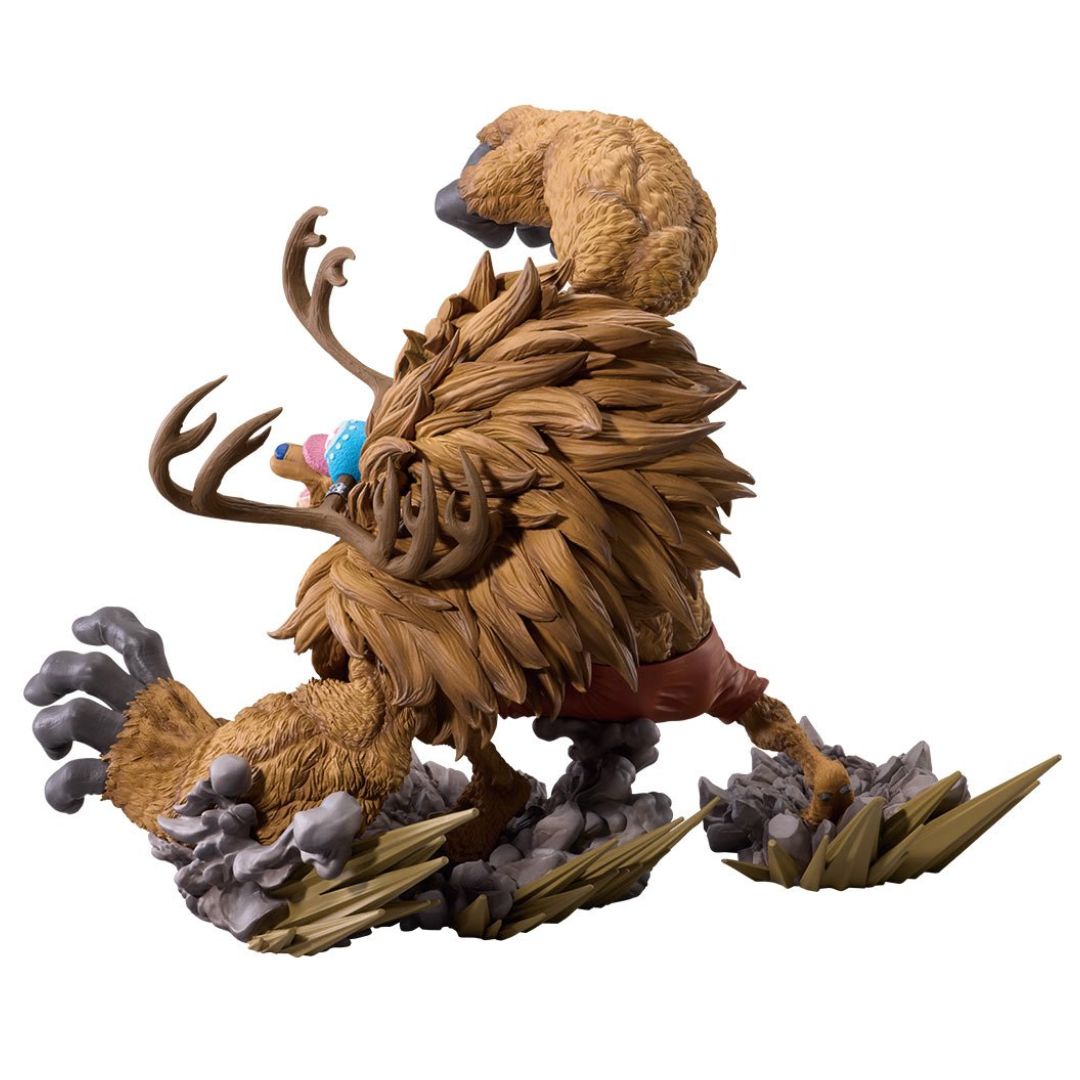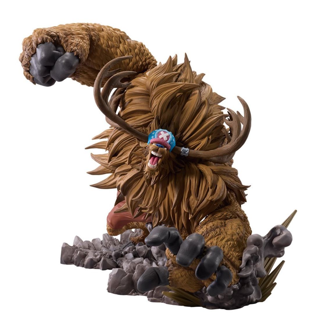 Chopper is captured mid-attack, his massive, heavily-furred fist cocked and ready to strike, while his huge, dark-tipped claws grip the shattered, rocky terrain of the base, sending debris scattering. Standing approximately 8.30 inches (21.08 cm) tall, this premium figure is a stunning and essential centerpiece for any One Piece enthusiast looking to showcase the crew's unstoppable strength.