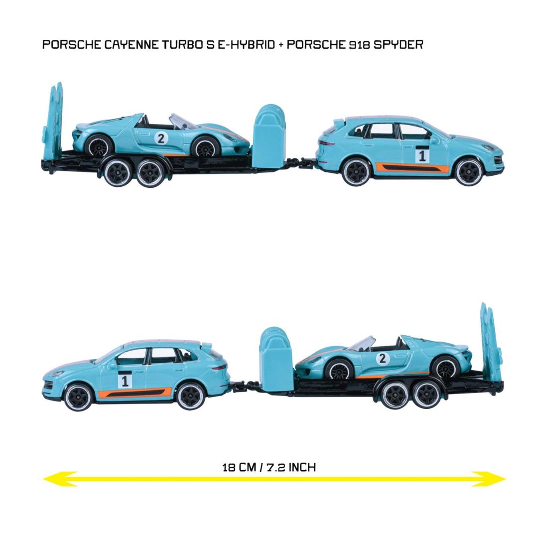 From the everyday dominance of the Cayenne Turbo S E-Hybrid to the track-bred brilliance of the 918 Spyder, this Majorette trailer set captures Porsche’s innovation across generations. Whether recreating road-trip adventures, race-day transport, or showcasing it as a centerpiece, this set delivers realism, durability, and excitement in equal measure.